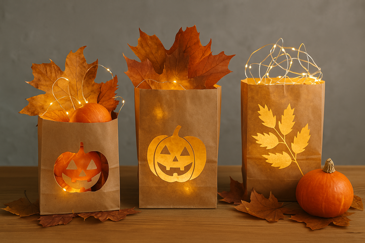 Světýlka k podzimnímu období neodmyslitelně patří. Z papírové tašky snadno vytvoříte originální „světelnou dekoraci“.